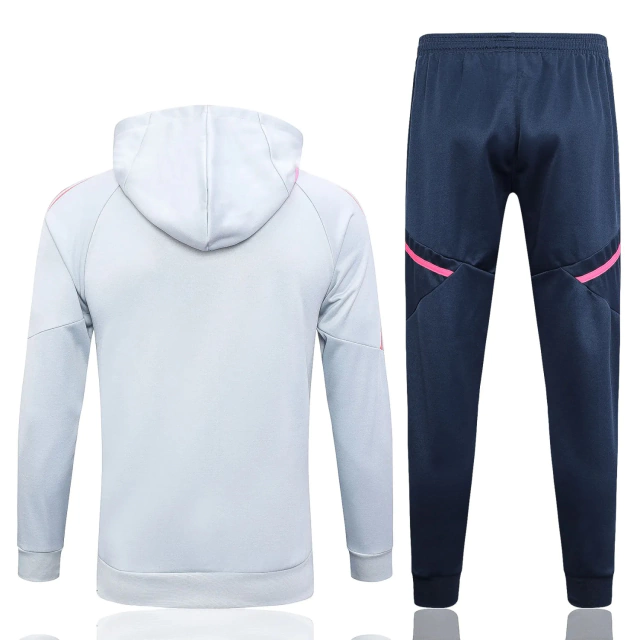 Esse conjunto moletom é feito com material de altíssima qualidade para o seu conforto e estilo! Com a cor cinza predominante e detalhes em rosa e azul marinho, o conjunto é um dos que possui mais destaque!